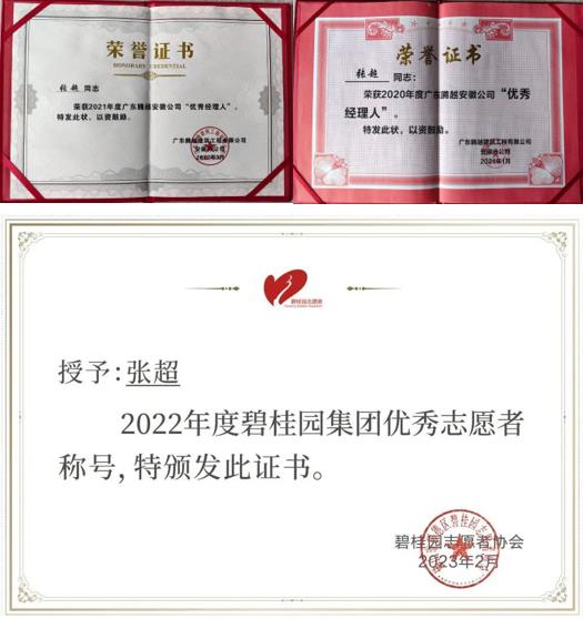 張超,中國(guó)共產(chǎn)黨黨員,騰越建筑安徽分公司綜合管理部人力行政經(jīng)理,加入公司后以飽滿的工作熱情與扎實(shí)的工作作風(fēng)為人稱道,2020-2021年度連續(xù)獲得“優(yōu)秀經(jīng)理人”稱號(hào)、2022年獲碧桂園集團(tuán)“優(yōu)秀志愿者”稱號(hào)、“集團(tuán)一星講師”。